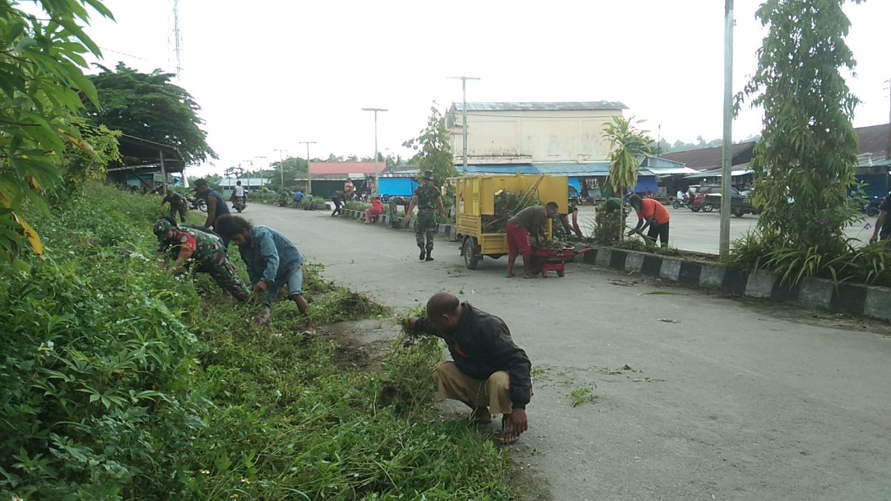Kegiatan tersebut melibatkan personel dari Kodim 1708/BN, personel Polsek, Dinas kebersihan, masyarakat, serta tukang ojek yang mangkal di sekitar Pasar Darfuar.