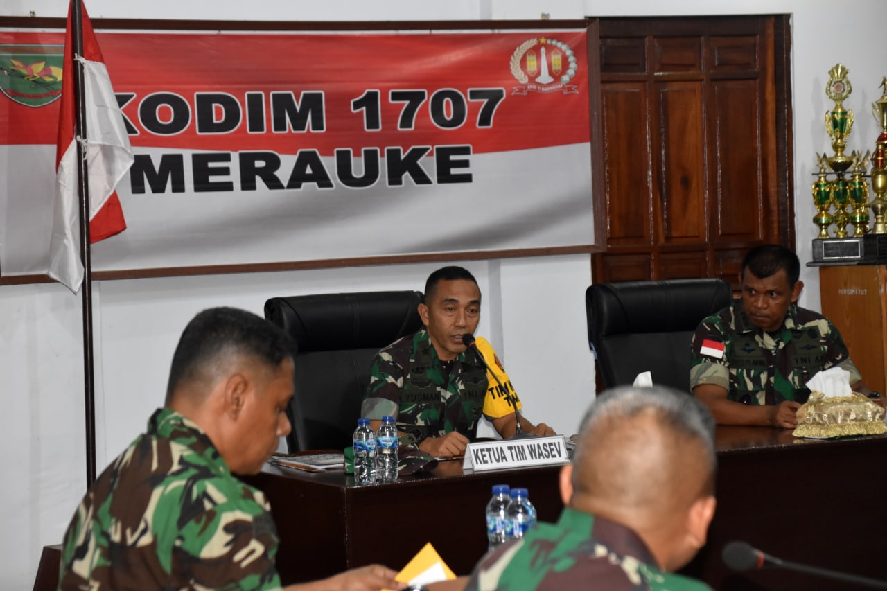 Kilaspapua, Jayapura- Wakil Asisten Latihan Kepala Staf Angkatan Darat Bidang Rencana dan Latihan, Brigjen TNI Tri Yusman Madayun selaku Ketua Tim Wasev PJO TMMD Ke-113 TA. 2022 didampingi Kasrem 174/ATW Kolonel Inf Frits W.R. Pelamonia melakukan kunjungan kerja di Makodim 1707/Merauke, Kabupaten Merauke, Selasa (31/5/2022).