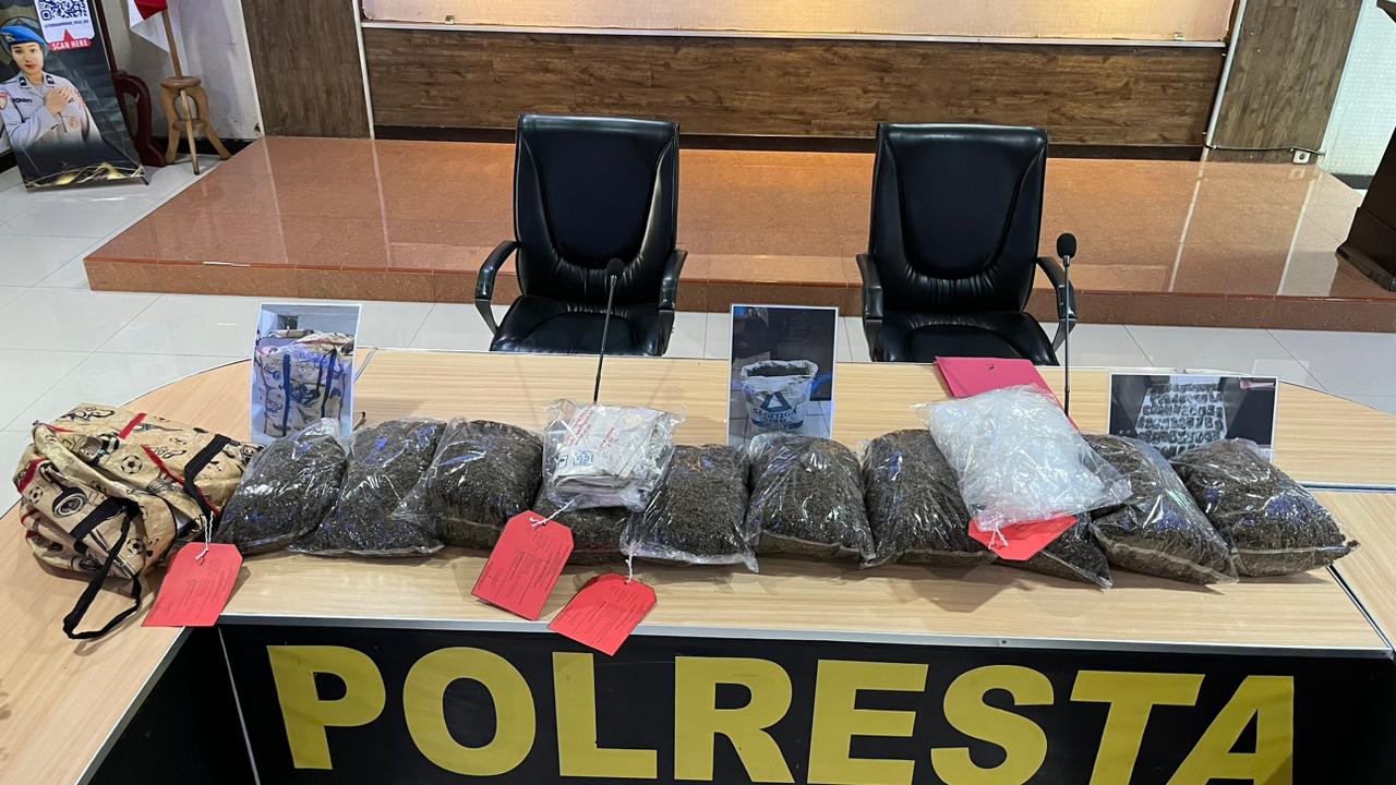 Kapolresta mengatakan, barang bukti ganja seberat 8,3 Kilogram yang ditemukan merupakan tangkapan dengan barang bukti terbanyak di Tahun 2026 milik tersangka seorang pria berinisial MI Alias A (29), dimana pada bulan lalu hanya mencapai 6 kilogram lebih dalam pengungkapan satu kasus.