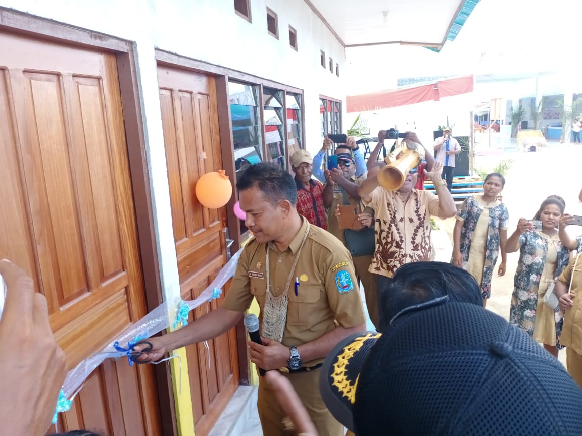 Asisten 1 bidang Pemerintah Setda Kabupaten Jayapura, Abdul Rahman Basri saat meresmikan gedung paud sinar kasih bertepatan peresmian kantor pemerintah adat Homfolo.