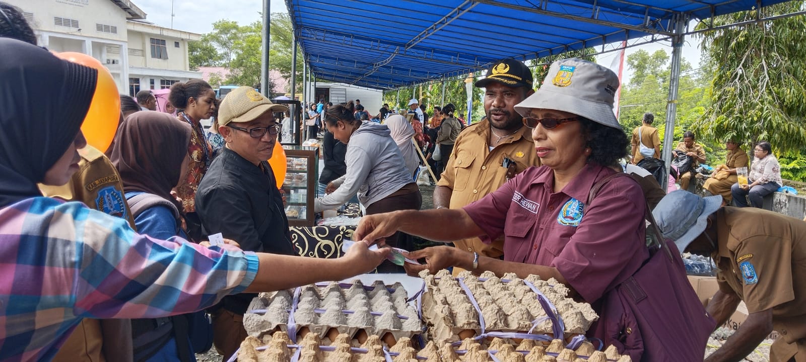 Dari pantauan dilokasi, terlihat warga menyerbu stand Dinas perkebunan dan peternakan,(Disbunak) Kabupaten Jayapura guna memburu telur, daging ayam dan daging sapi yang harga terjangkau bagi masyarakat setelah disubsidi.