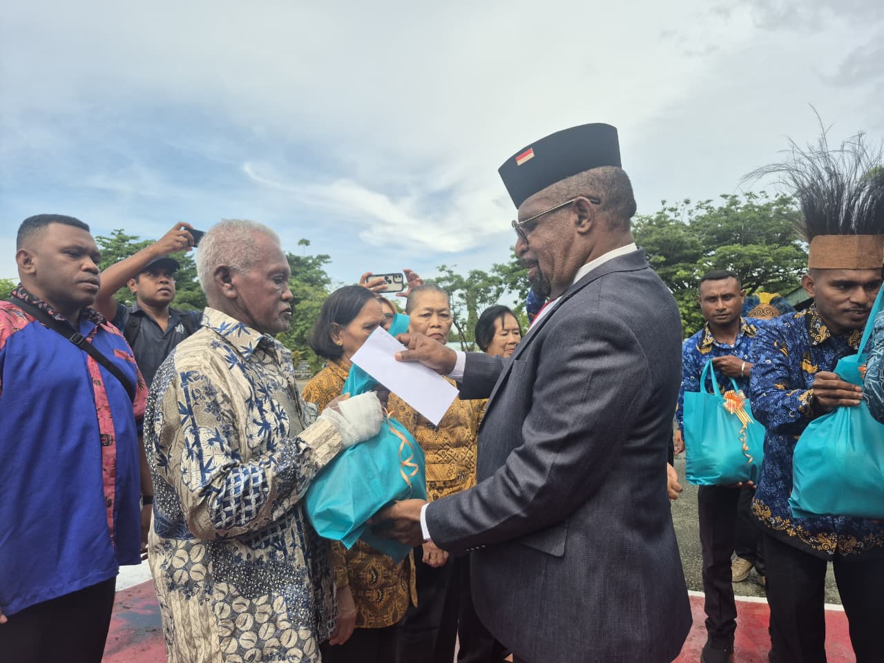 “ Sudah selayaknya kita menghargai mereka. Awalnya kita akan kunjungan dimasing-masing rumah tetapi dari hasil rapat akhirnya diputuskan mereka hadir di upacara hari pahlawan sekaligus menyerahkan bantuan dari pemerintah Kabupaten Jayapura ,” katanya, Senin (10/11/2025).