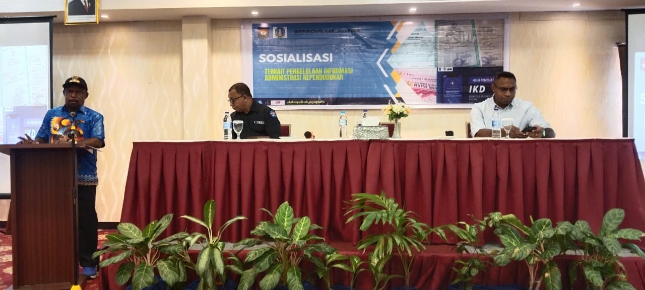 Bupati Jayapura dalam sambutannya mengatakan, sosialisasi ini bersifat inklusif dengan mengemban prinsip non diskriminatif agar dapat mewujudkan Kabupaten Jayapura yang aman, nyaman, mandiri, berkeadilan, maju dan berkelanjutan,(SIAK) sehingga harus dikonsolidasi dan diterbitkan dokumen kependukan elektronik,(Bar-code).