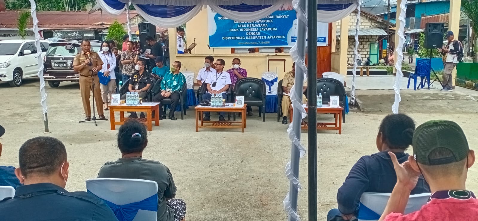 Kilaspapua, Sentani- Sebanyak, 100 pedagang di Pasar Pharaa Sentani mengikuti sosialisasi program digitalisasi pasar rakyat melalui program SIAP,(Sehat Inovasi Aman Pakai) QRIS bagi pedagang pasar Pharaa yang digelar Dinas Perindustrian dan Perdagangan,(Disperindag) Kabupaten Jayapura dengan bekerjasama dengan Bank Indonesia,(BI) Perwakilan Papua dihalaman Pasar Pharaa Sentani, Selasa (31/5/2022).