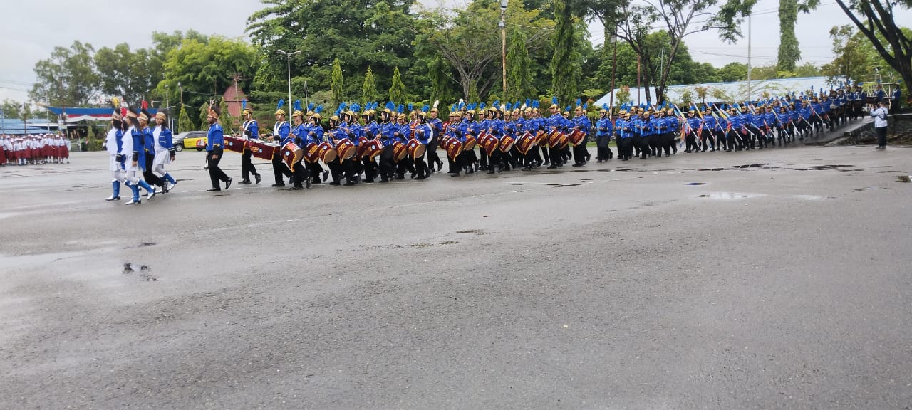 Penampilan Marching Band dari pelajar saat memeriahkan perayaan HUT PGRI ke-80 tahun 2025 Kabupaten Jayapura.