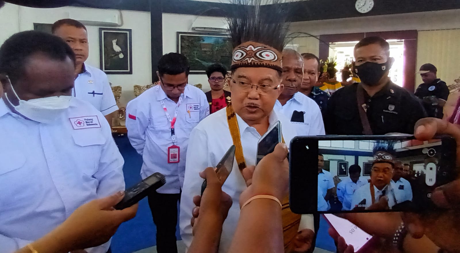 Kilaspapua, Sentani – Mantan Wakil Presiden RI, H. Muhammad Jusuf Kalla, mengunjungi Provinsi Papua untuk melantik Dewan Kehormatan dan Pengurus Palang Merah Indonesia (PMI) Provinsi Papua periode 2022-2027, serta melakukan silaturahmi dengan Dewan Masjid Indonesia (DMI) maupun Organisasi Islam di tingkat Provinsi Papua, Rabu (29/6/2022).