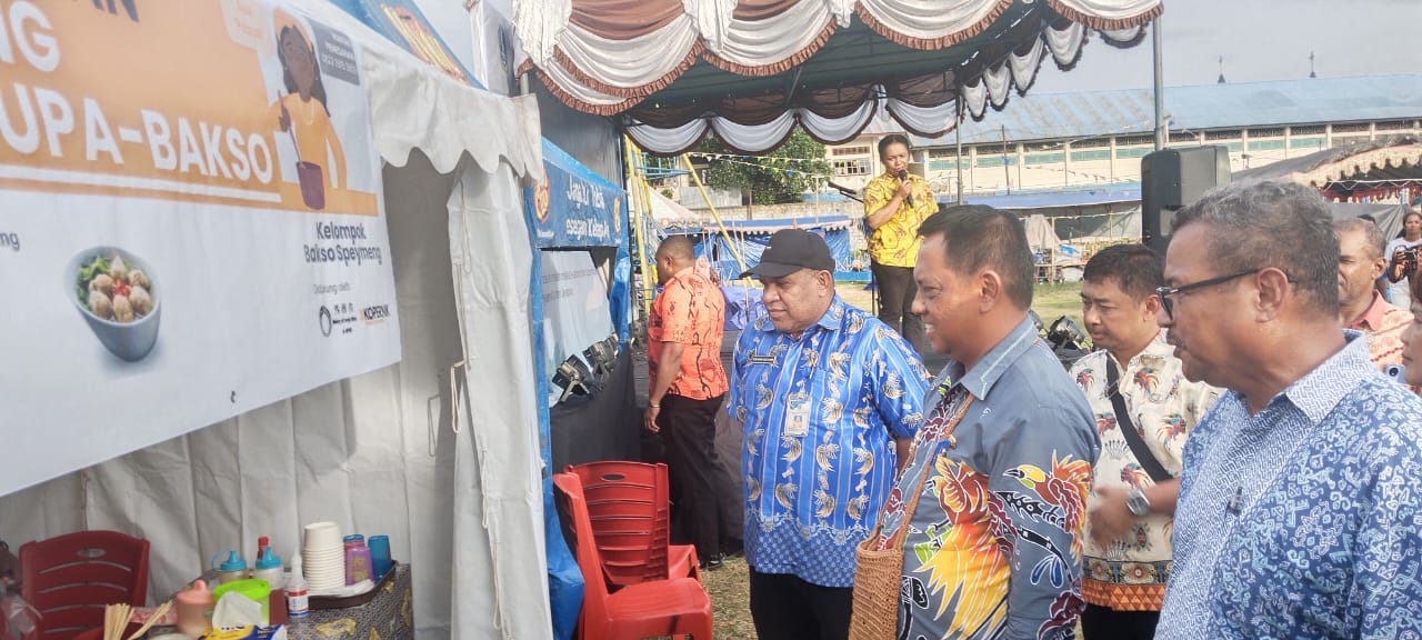 Pj Bupati Jayapura, Semuel Siriwa secara resmi membuka event tersebut, setelah itu berkesempatan berkeliling disetiap UMKM sambil mencicipi produk olahan ikan dan coklat dipamerkan.