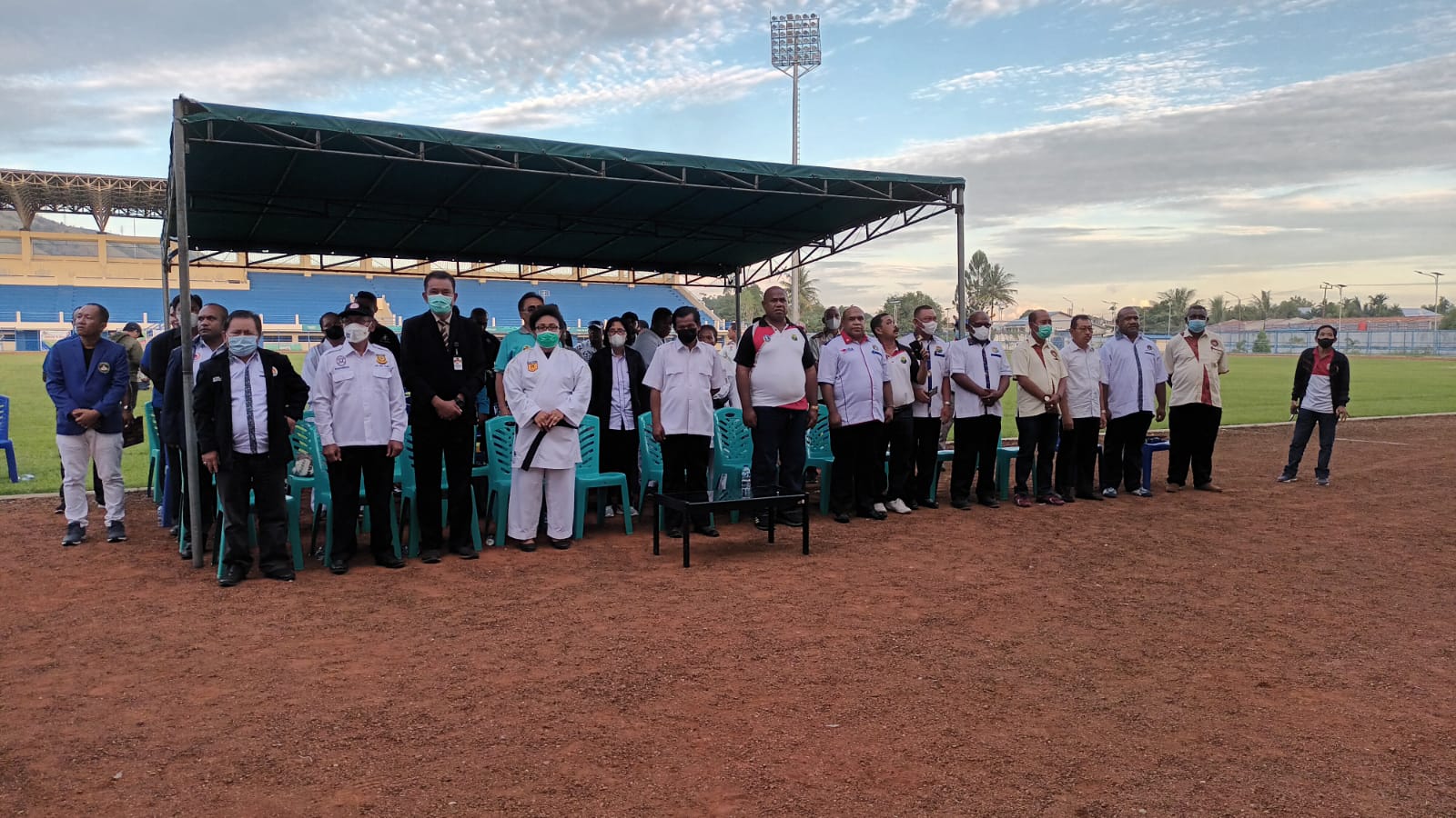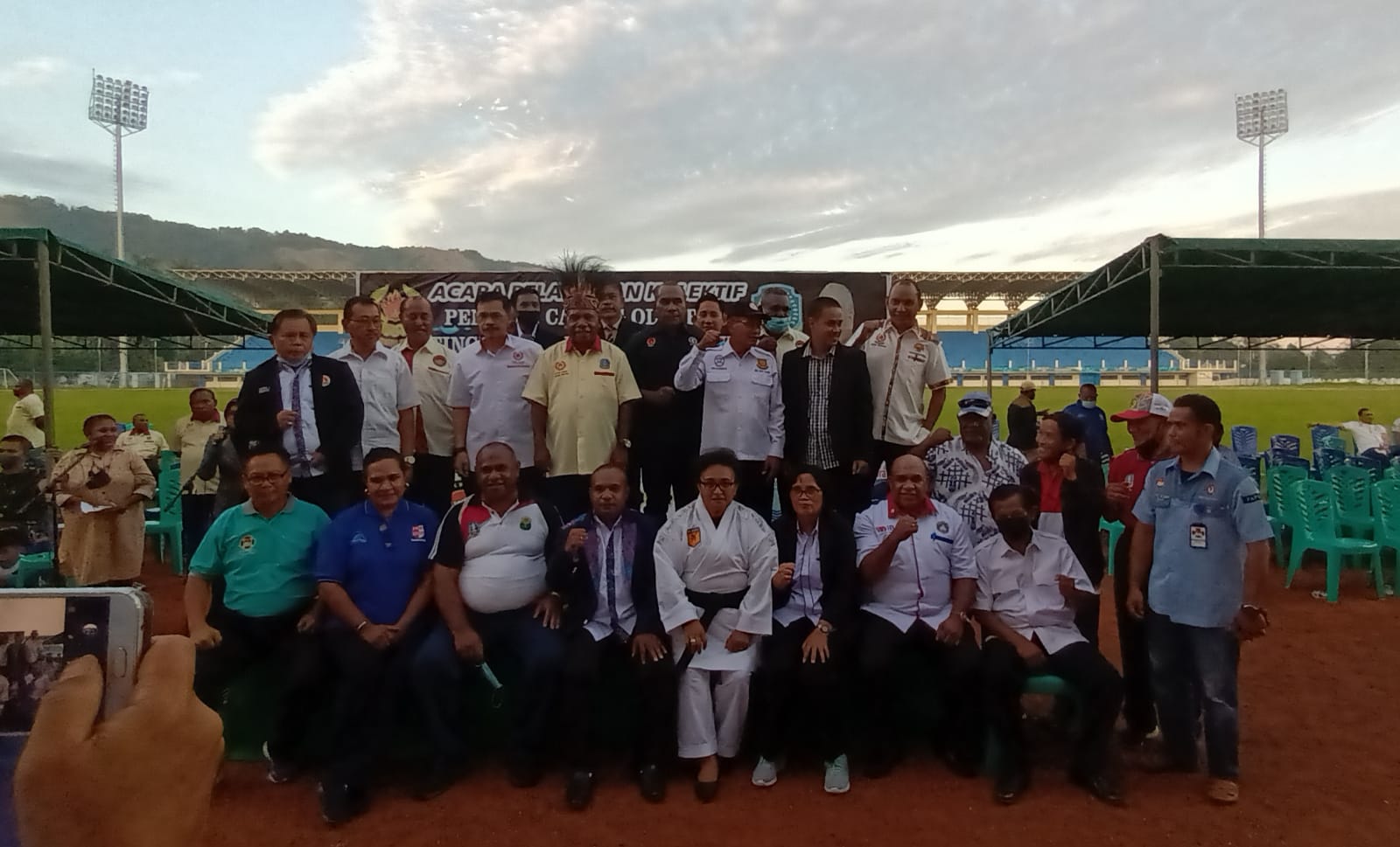 Kilaspapua, Sentani- Ketua Umum (Komite Olahraga Nasional Indonesia) KONI Kabupaten Jayapura, Mathius Awoitauw, S.E., M.Si.,melakukan Pengambilan Sumpah/Janji Prasetia dan Pelantikan sejumlah Pengkab Cabor yang berada di bawah naungan KONI Kabupaten Jayapura. Kegiatan berlangsung di Stadion Barnabas Youwe (SBY) Kota Sentani, Kabupaten Jayapura, Senin (16/5/2022) sore diikuti oleh 12 Pengurus Kabupaten (Pengkab) Cabor.