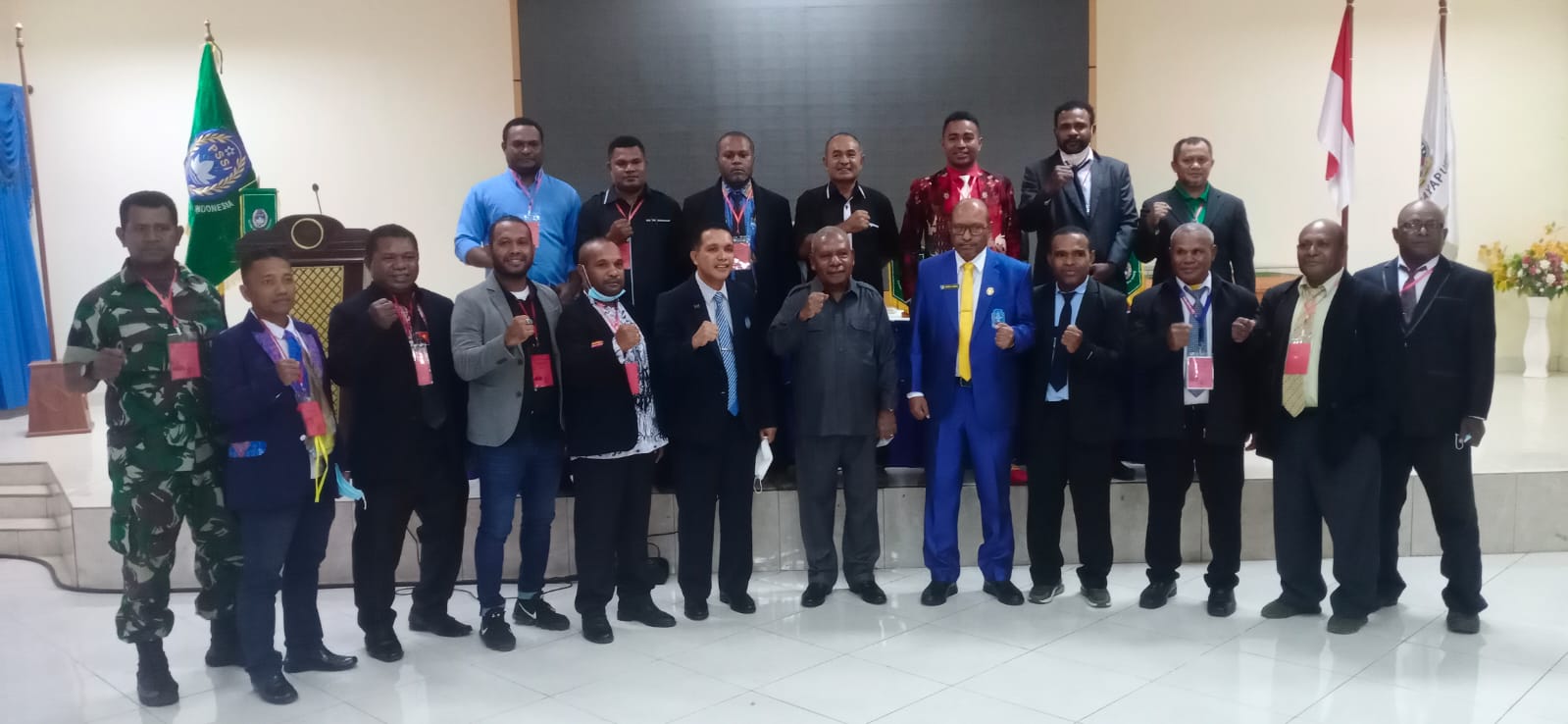 Bupati Jayapura saat berphoto bersama peserta Konggres Askab PSSI Kabupaten Jayapura yang digelar diaula lantai II Kantor Bupati Jayapura.