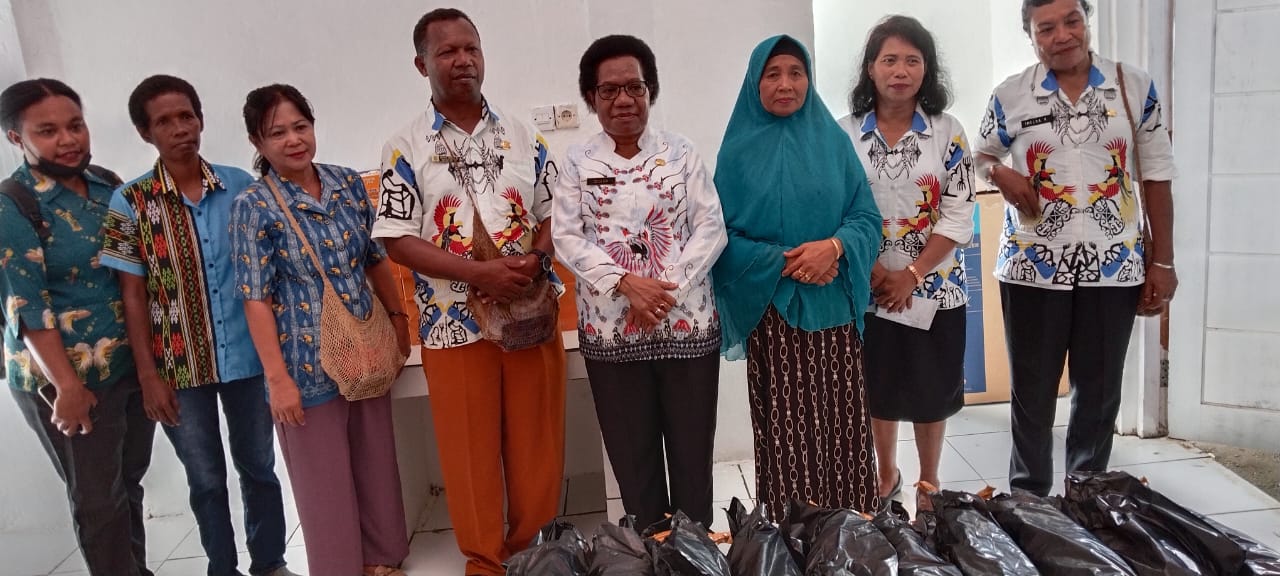 Kadis DKP Kabupaten Jayapura didampingi Asisten II bidang perekonomian dan keuangan Setda Kabupaten Jayapura berphoto bersama dengan pengolah ikan asar.