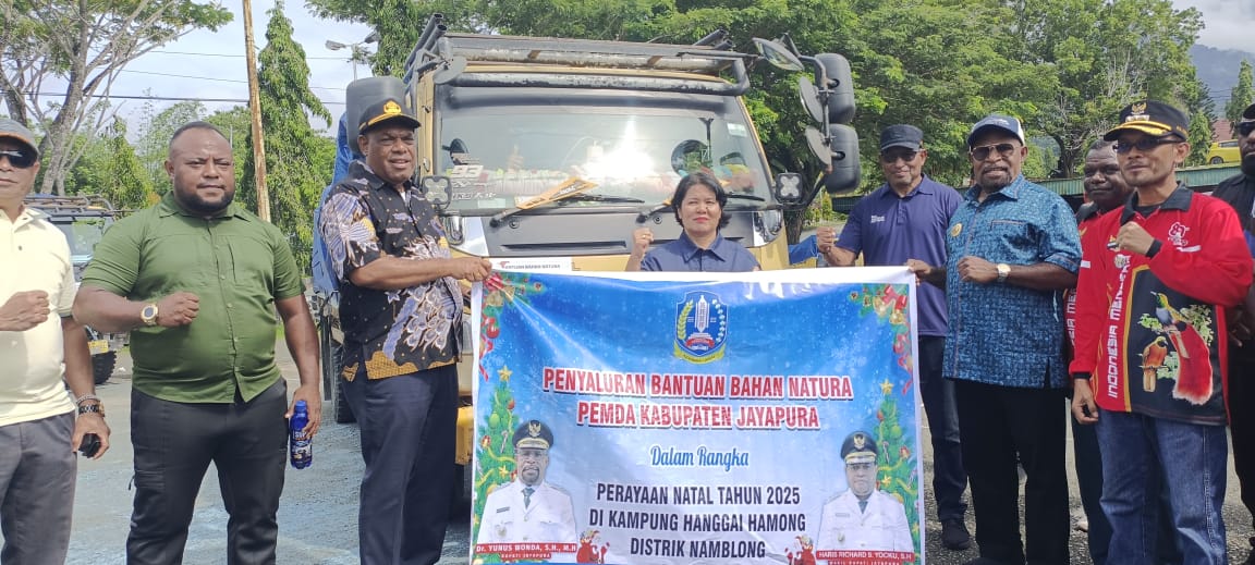 Kilaspapua, Sentani – Pemerintah Kabupaten Jayapura melalui dinas sosial,(Dinsos) Kabupaten Jayapura menyalurkan bantuan natal dan tahun baru,(Nataru) dalam rangka perayaan natal tahun 2025. Diawali apel pagi dipimpin oleh Bupati Jayapura, Yunus Wonda dilapangan apel kantor Bupati Jayapura, Jumat (19/12/2025).