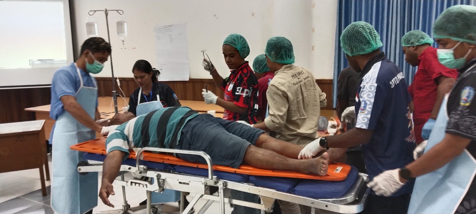 Kilaspapua, Sentani – Sejumlah perawat mensimulasikan penanganan pasien gawat darurat seperti kecelakaan lalu lintas dan penyakit jantung. Simulasi tersebut disaksikan 35 perawat dari 22 puskesmas, rumah sakit RSUD Yowari dan Resimen Center atau PSC pada penutupan pelatihan Basic Trauma Cardiac Life Suport,(BTCLS) yang telah digelar selama 5 hari oleh dinas kesehatan Kabupaten Jayapura diaula , Sabtu ( 11/4/2026).