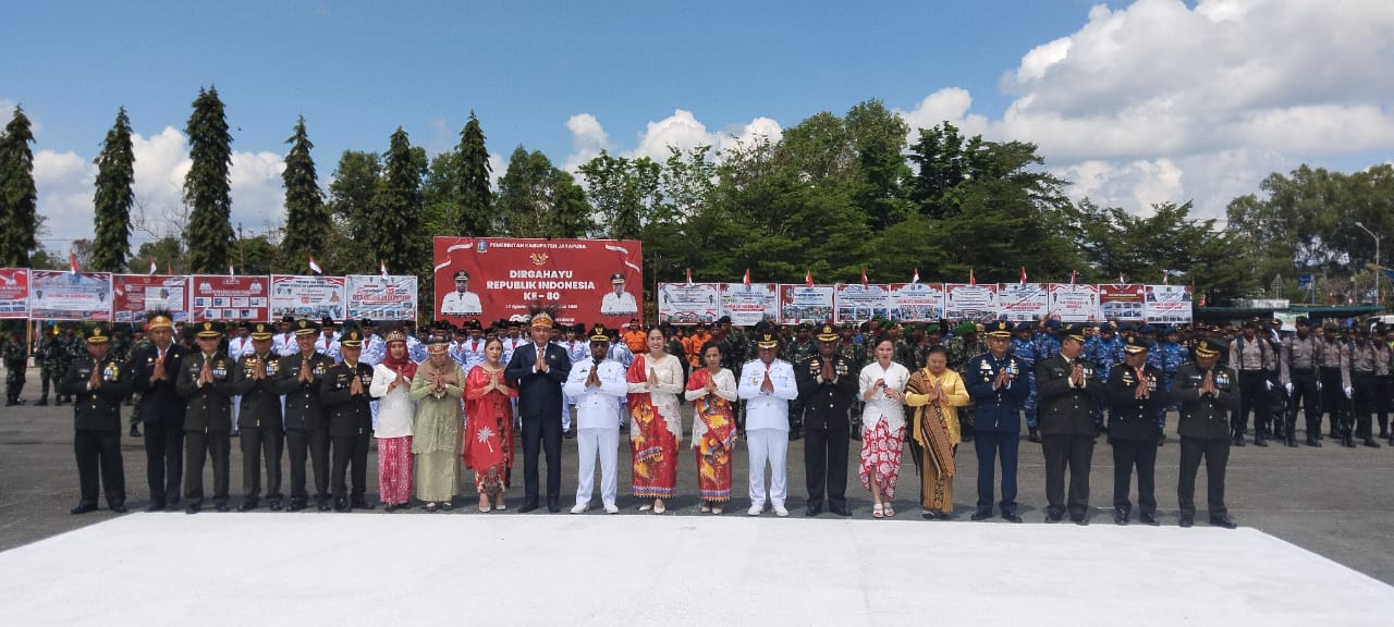 “ Mewakili Pemerintah Kabupaten Jayapura menyampaikan dirgahayu kepada seluruh masyarakat Kabupaten Jayapura yang ke-80 tahun 2025 ,” ungkapnya.