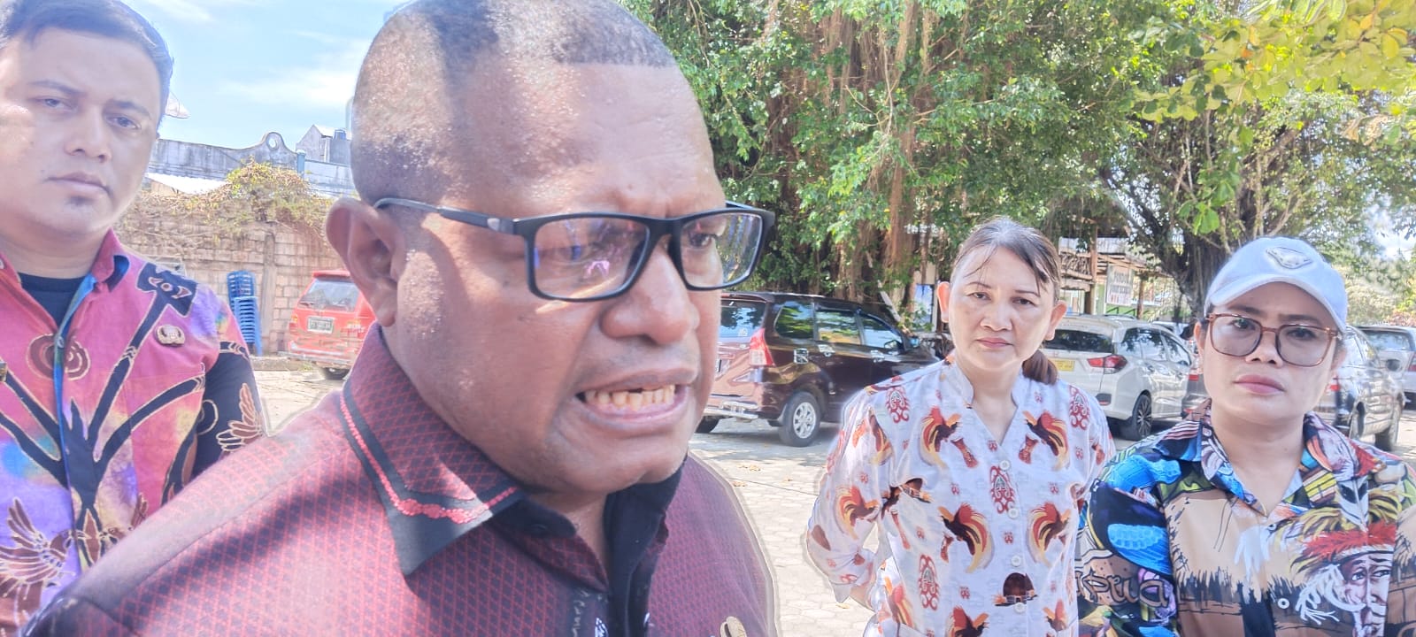Wabup Jayapura, Haris Richard Yocku saat diwawancarai soal pemalangan SD Inpres Harapan