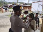 Satuan samapta polres Tolikara bagikan masker kepada masyarakat yang melapor ke penjagaan