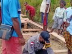 Bhabinkamtibmas Bersama Warga Bekerjasama Membangun Dermaga di Kampung Rawa Biru Distrik Sota