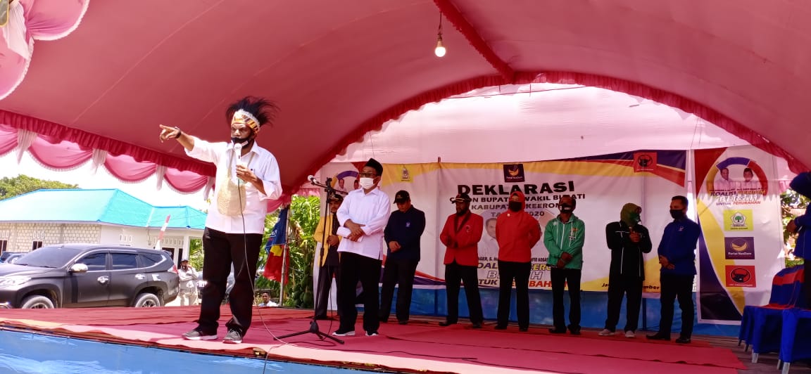 Sebelumnya, Pasangan calon,(Paslon) Bupati, Piter Gusbager,S.Hut, MUP dan Wakil Bupati Keerom, Drs. Wahfir Kosasih,SH,MH,M.Si dengan nama “ Koalisi Bersih melakukan deklarasi koalisi partai politik di Posko pemenangan Distrik Skanto, Jumat (4/9/2020). Dalam deklarasi itu, 4 partai politik yakni, Partai PDIP, Golkar, Nasdem,dan PKB membacakan mandat dukungan,( B1-KWK)dari pimpinan pusat partai kepada pasangan calon Bupati, Piter Gusbager dan Wakil Bupati Keerom, Wahfir Kosasih dihadapan pendukungnya.