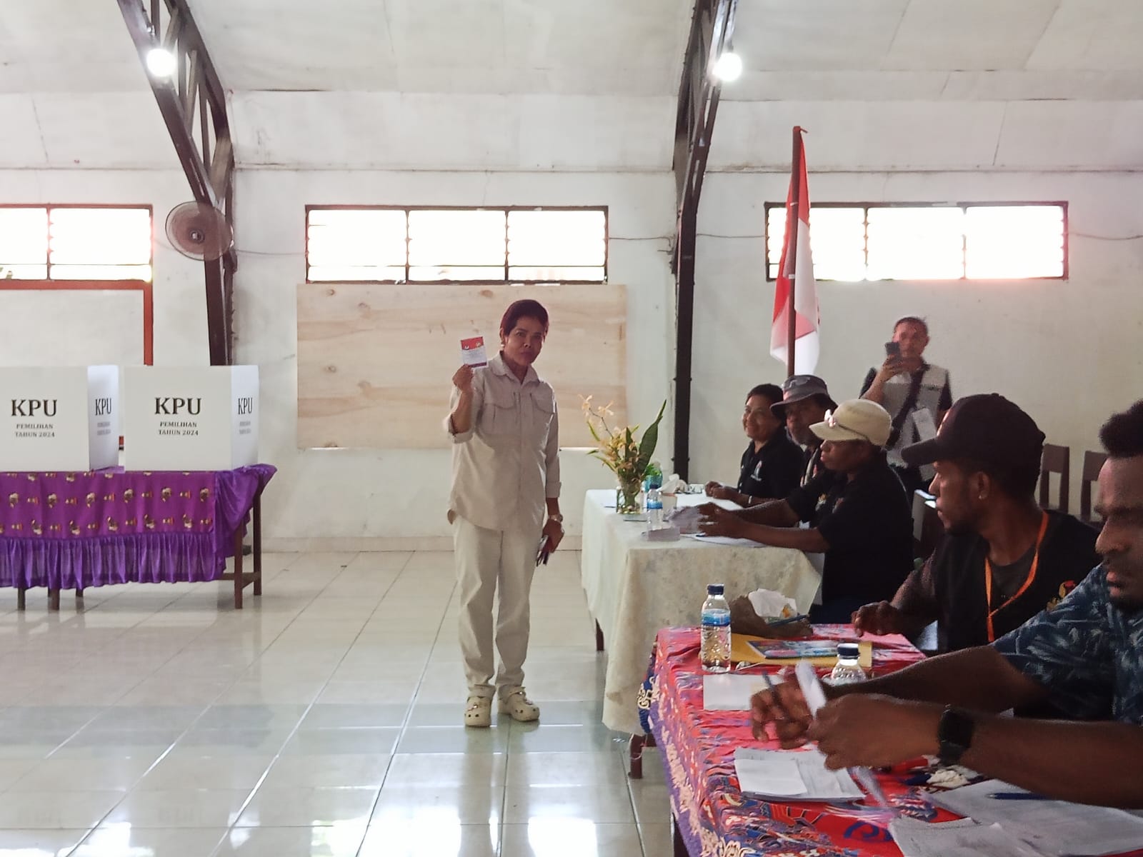 Kilaspapua, Sarmi – Ketua DPD Gerindra Papua Yanni, Rabu (06/8/2025) sekitar pukul 10.45 wit menggunakan hak pilihnya di TPS 01 Sarmi kota, Kabupaten Sarmi.