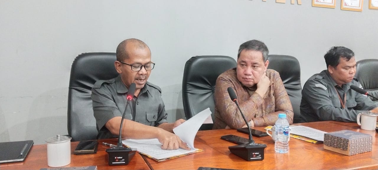 Ketua Bawaslu Papua didampingi Kordiv SDMO Diklat Bawaslu RI beserta Komisoner Bawaslu Papua saat menggelar press conference terkait himbauan pelaksanaan PSU.