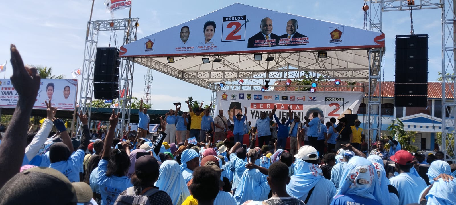 Kilaspapua, Sarmi – Ribuan masyarakat Sarmi di 10 distrik “ Membanjiri kampanye akbar paslon Yanni- Jemmi Esau Maban yang digelar dilapangan Merdeka, Sarmi, Kamis (21/11/2024). Dihadiri oleh 13 partai pengusung.
