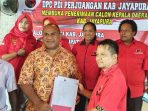 Kilaspapua, Sentani- Kini, giliran Ted Yones Mokay yang mengambil form formulir pendaftaran di Sekretariat DPC PDIP Kabupaten Jayapura yang berada di Doyo