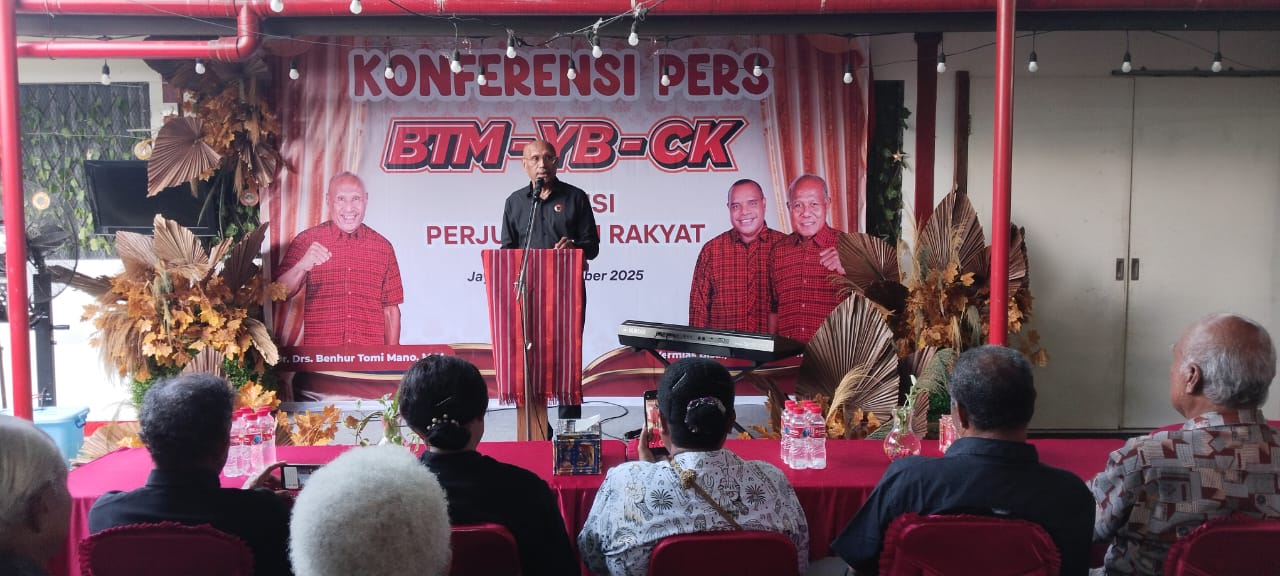 Kilaspapua, Jayapura – Merespon hasil pemilihan kepala daerah Provinsi Papua tahun 2025 yang telah diumumkan, maka koalisi perjuangan rakyat melalui Benhur Tomi Mano,(BTM) – Yermias Bisai  (YB) Constant Karma,(CK) menyampaikan sejumlah pernyataan sikap yang dikemas pada konferensi pers dikediamanan BTM Kotaraja, Jumat (17/10/2025).